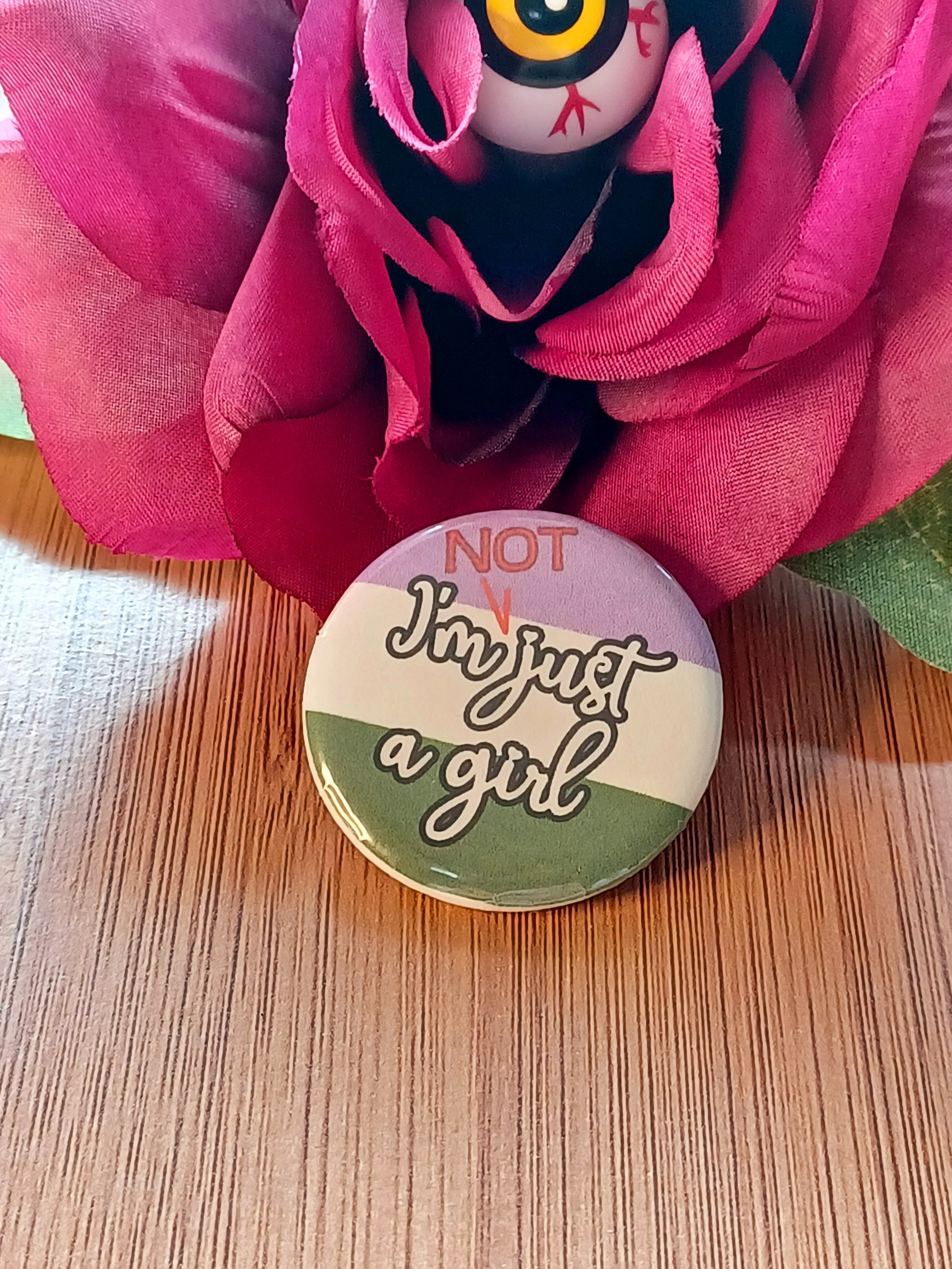If you would like a button with a different pride flag than the ones we currently have in stock, we would love to make a custom flag background for you, just use our contact form to let us know what flags, design, and quantity you would like.