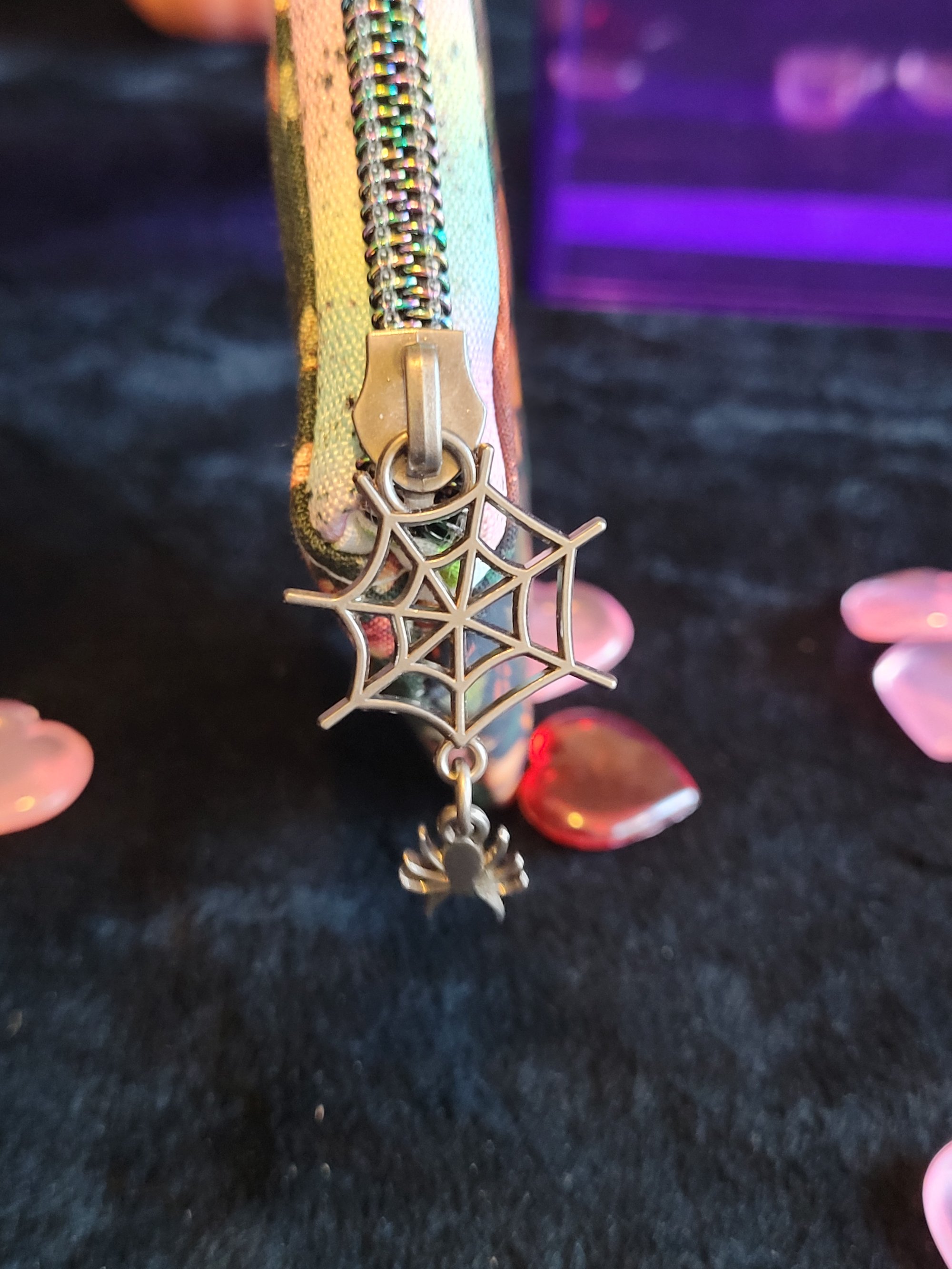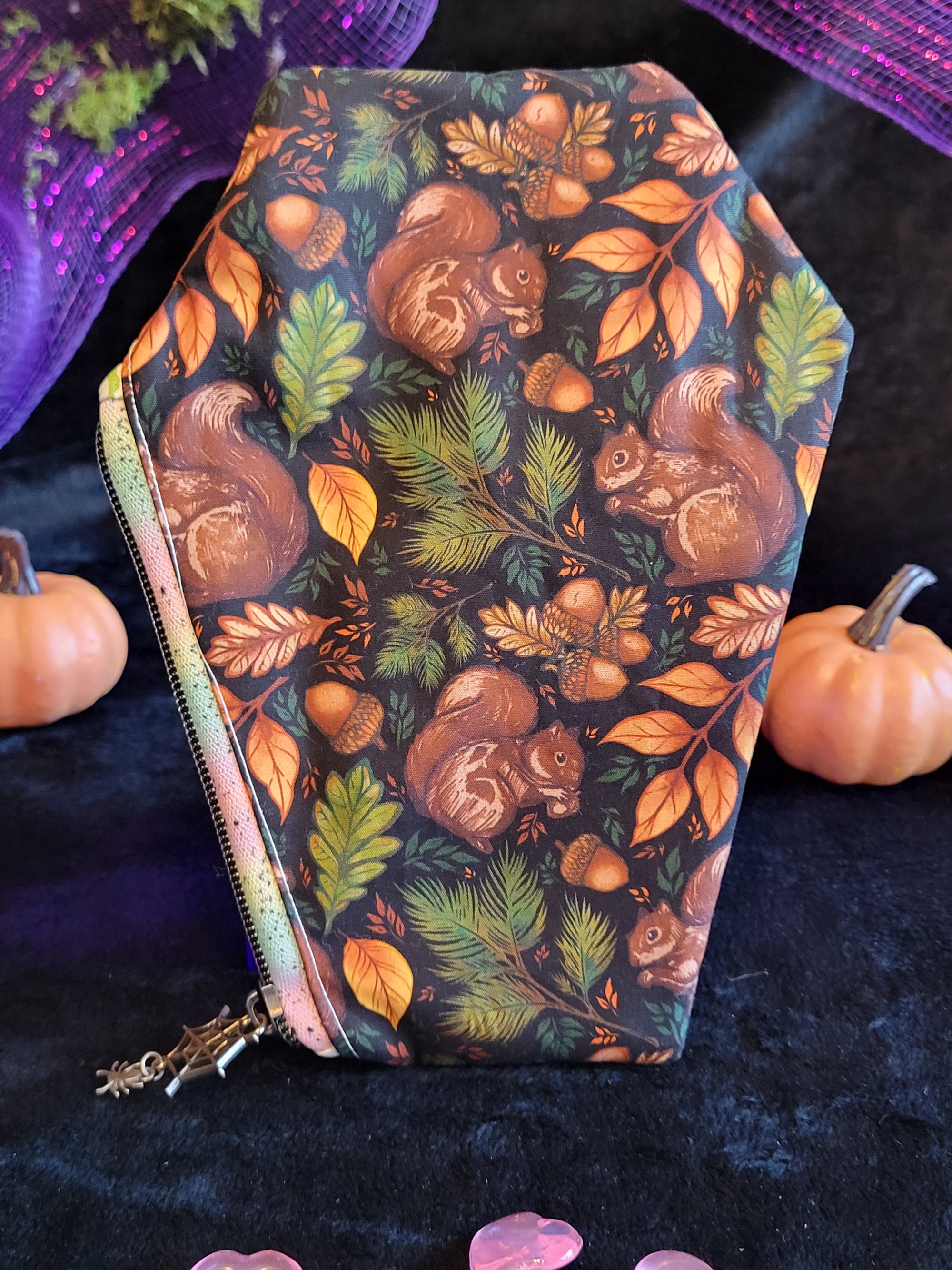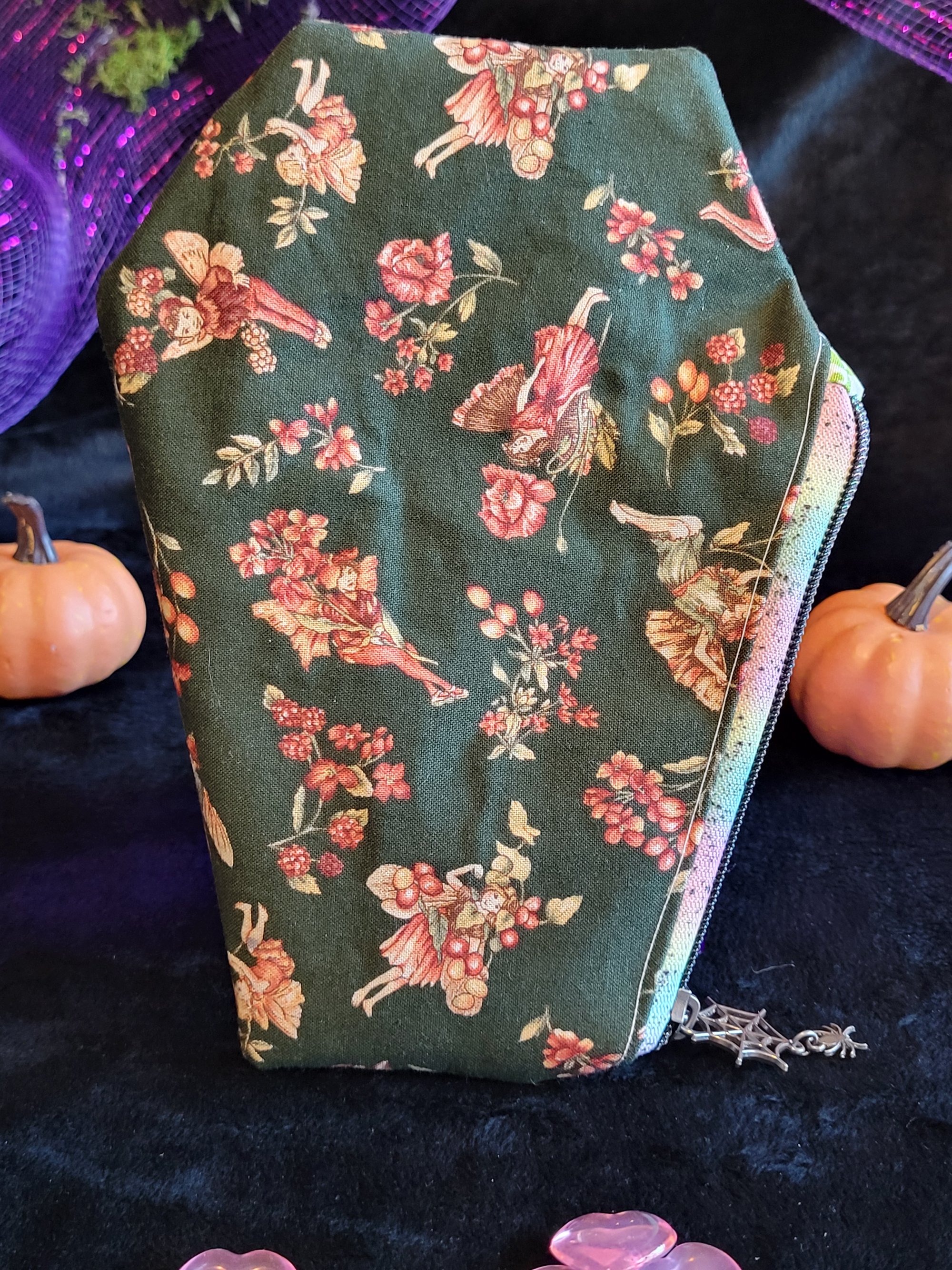 Coffin shaped zipper pouch. Cotton exterior and interior.